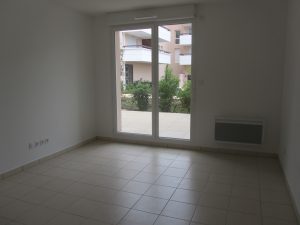 L’appartement T2 de 3 pièces (hall / séjour / cuisine, chambre, salle de bains / toilettes) est loué non meublé, et partiellement équipé d’une cuisine intégrée : meubles hauts et bas, évier / robinetterie, four traditionnel, plaques de cuisson vitrocéramique, hotte.